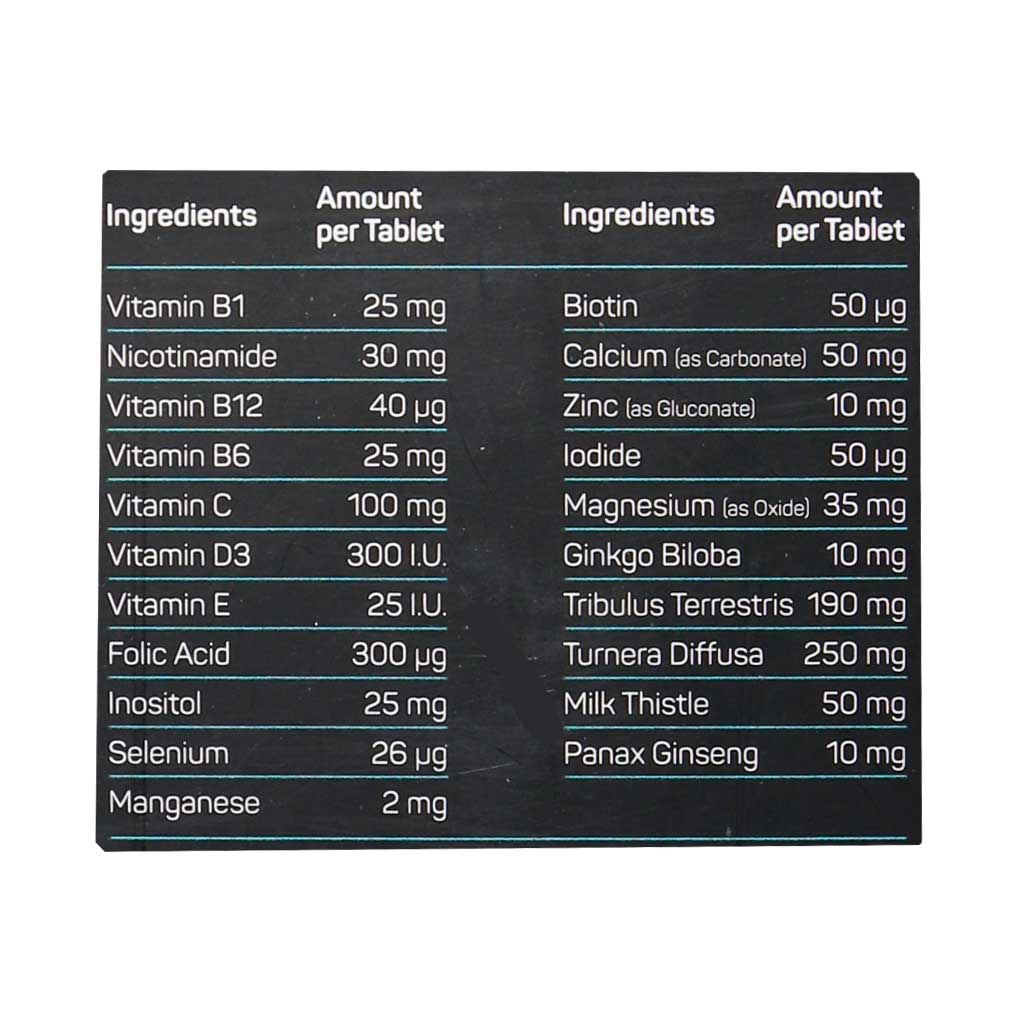 - دارای ترکیبات گیاهی نظیر جینسینگ، خار مریم، تریبولوس، گیاه دامیانا و جینکوبیلوبا