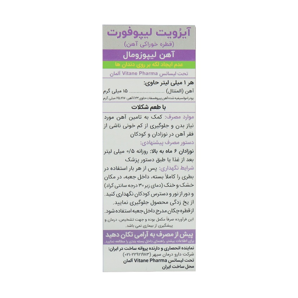 قطره آيرويت ليپوفورت30ميلي ليتر /Vitane Irovit ORAL DROPS 30 ml