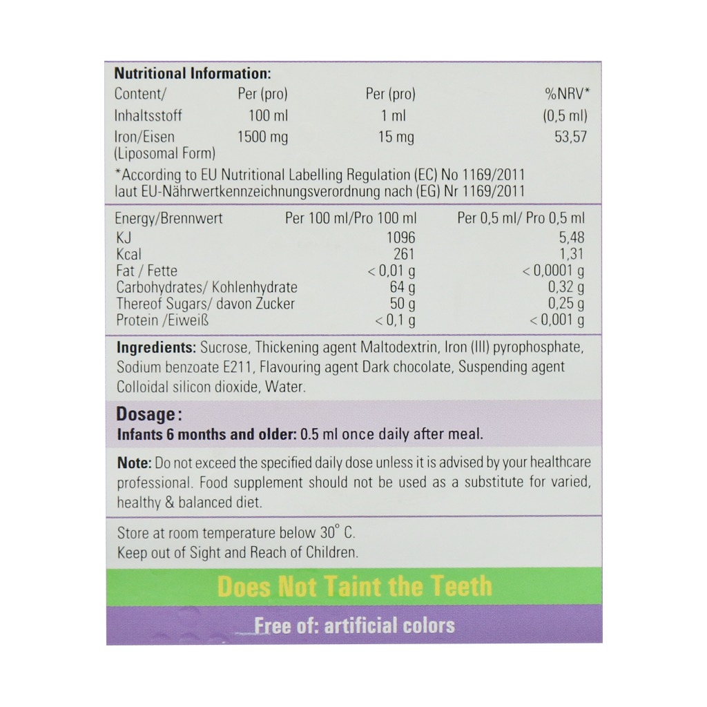 • قطره آهن با غلظت پایین تر که عمل بلع را آسان کند.