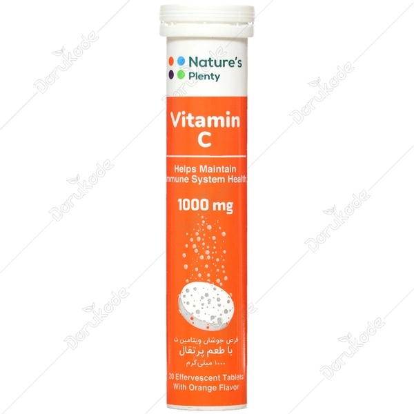قرص جوشان ويتامين C 1000 ميلي گرم نيچرز پلنتي با طعم ليمو و پرتقال /Natures Plenty Vitamin C 1000 mg 20 Effervescent Tabs