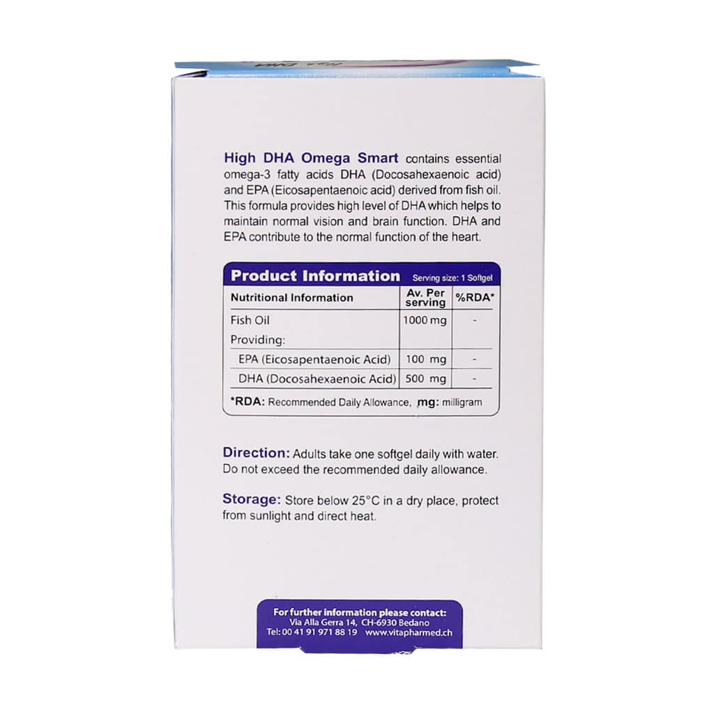 کپسول نرم ژلاتینی امگا 3 مدل High DHA ویواتیون حاوی اسیدهای چرب امگا 3 ضروری DHA و EPA حاصل از روغن ماهی است. این محصول سطح بالایی از DHA به میزان 500 میلی گرم را فراهم می‌کند که به حفظ بینایی طبیعی و عملکرد مغز کمک می‌کند. DHA و EPA در عملکرد طبیعی قلب نقش دارند.